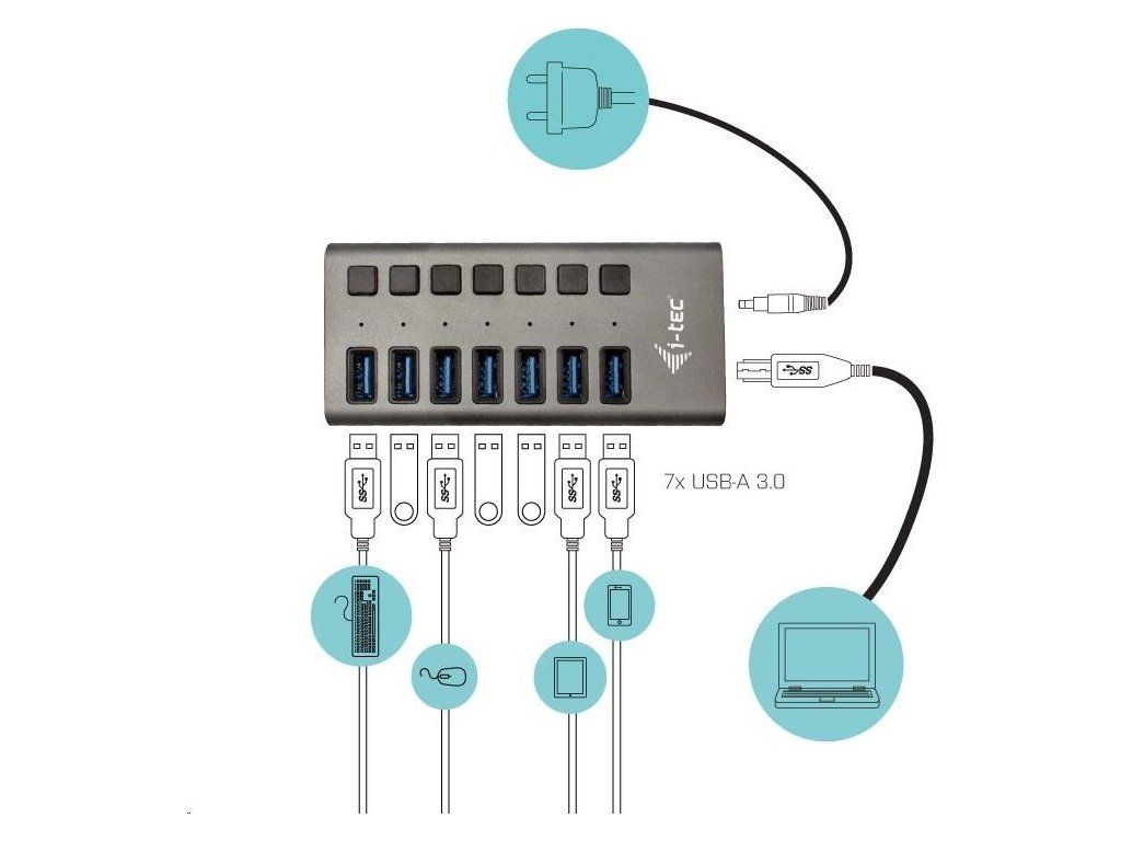 iTec USB 3.0 Nabíjací HUB 7port + napájací adaptér 36 W