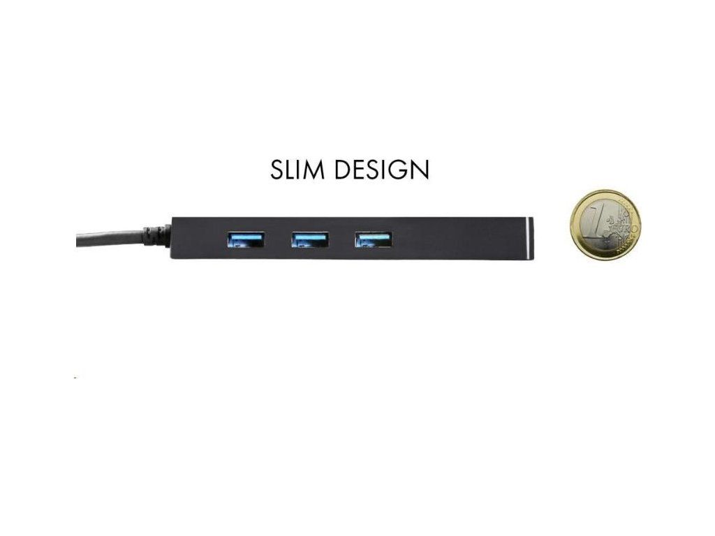 Kombinuje pasívny rozbočovač HUB s adaptérom Gigabit Ethernet na jednoduché a rýchle pripojenie obľúbených zariadení USB k notebooku, tabletu, počítaču alebo smartfónu s novým rozhraním USB-C alebo Thunderbolt 3 a na vysokorýchlostný prístup k sieti a internetu prostredníctvom portu Gigabit Ethernet. HUB ponúka tri USB 3.0 portov s funkciou Plug & Play a štandardným nabíjaním USB - automaticky rozpozná, či je pripojené nabíjacie zariadenie USB. USB 3.0 je dôležitý najmä pri prenose dát z pamäťových kariet USB a flash diskov, kde je jeho vysoká prenosová rýchlosť najužitočnejšia.