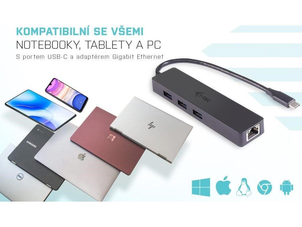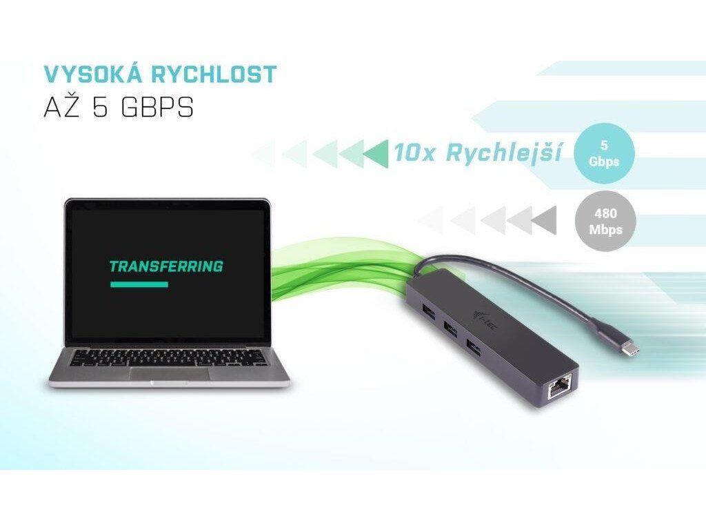 iTec USB-C 3.1 Slim 3-portový HUB + RJ-45