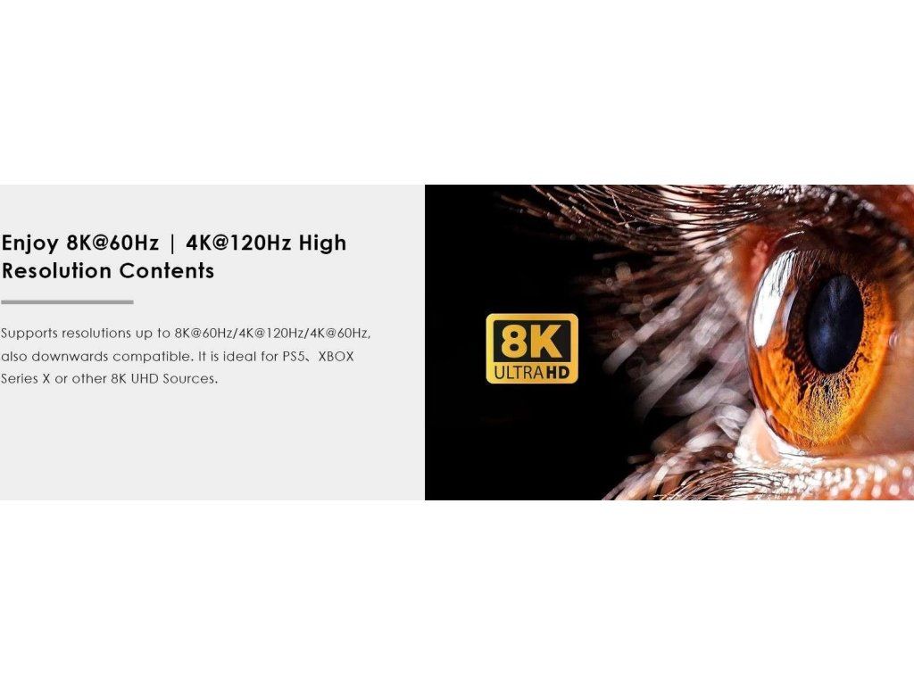 - Rozlíšenie: 8K@60hz, 4K@120Hz, 1080p