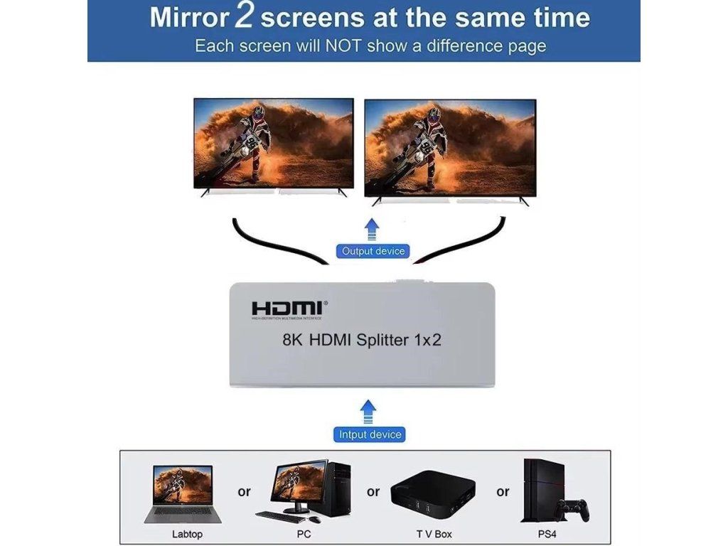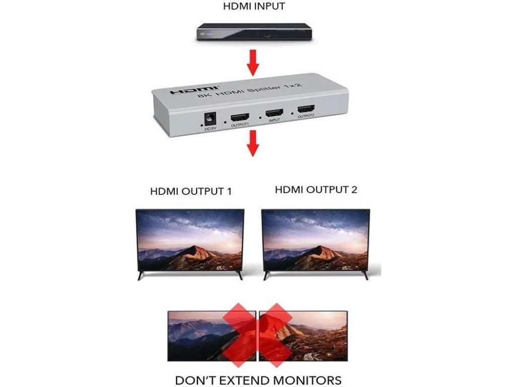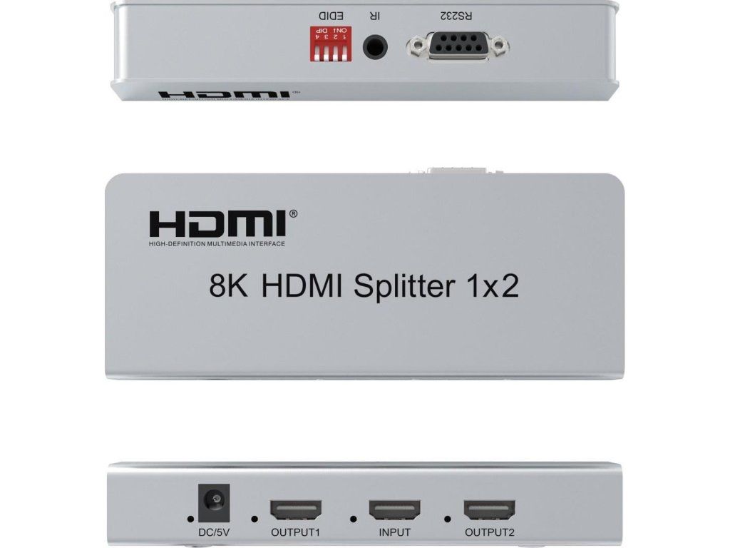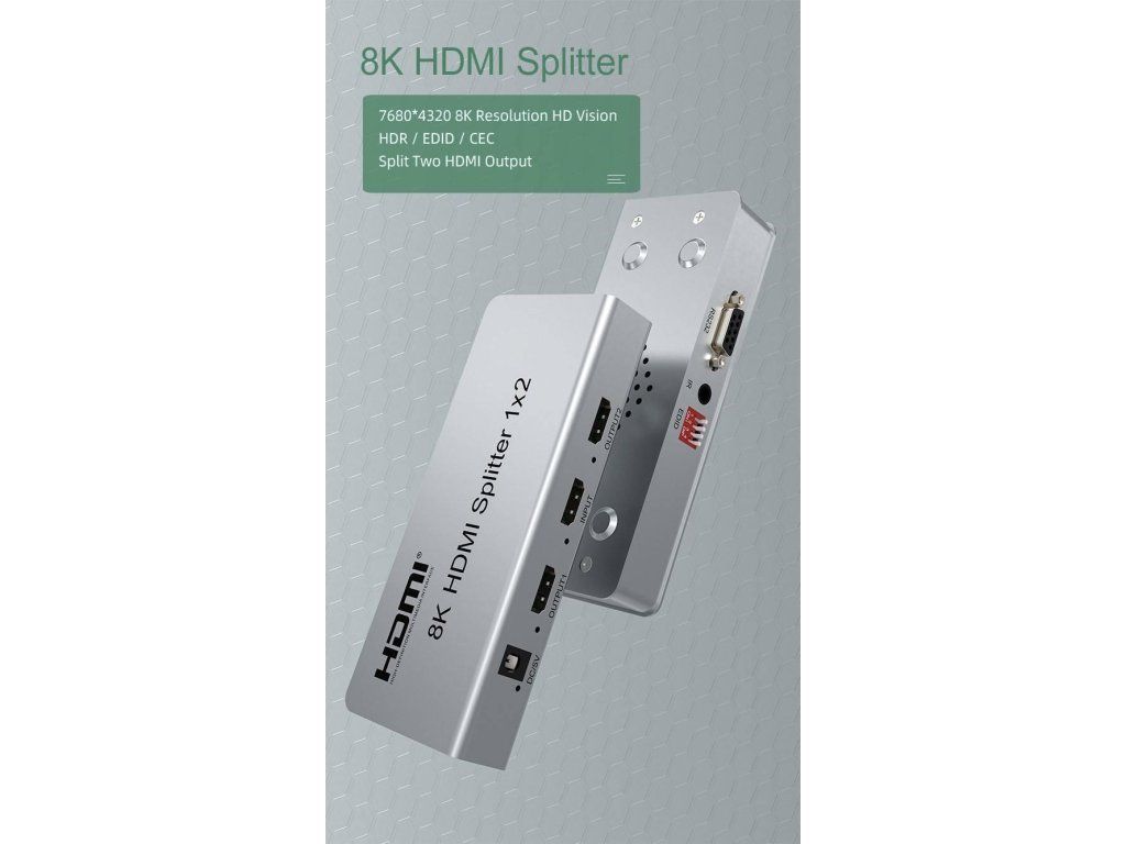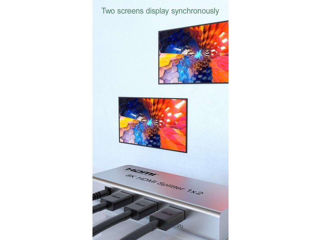 Splitter podporuje HDMI signál s rozlíšením až 8K@60Hz, 4K@120Hz alebo FULL HD 1080p