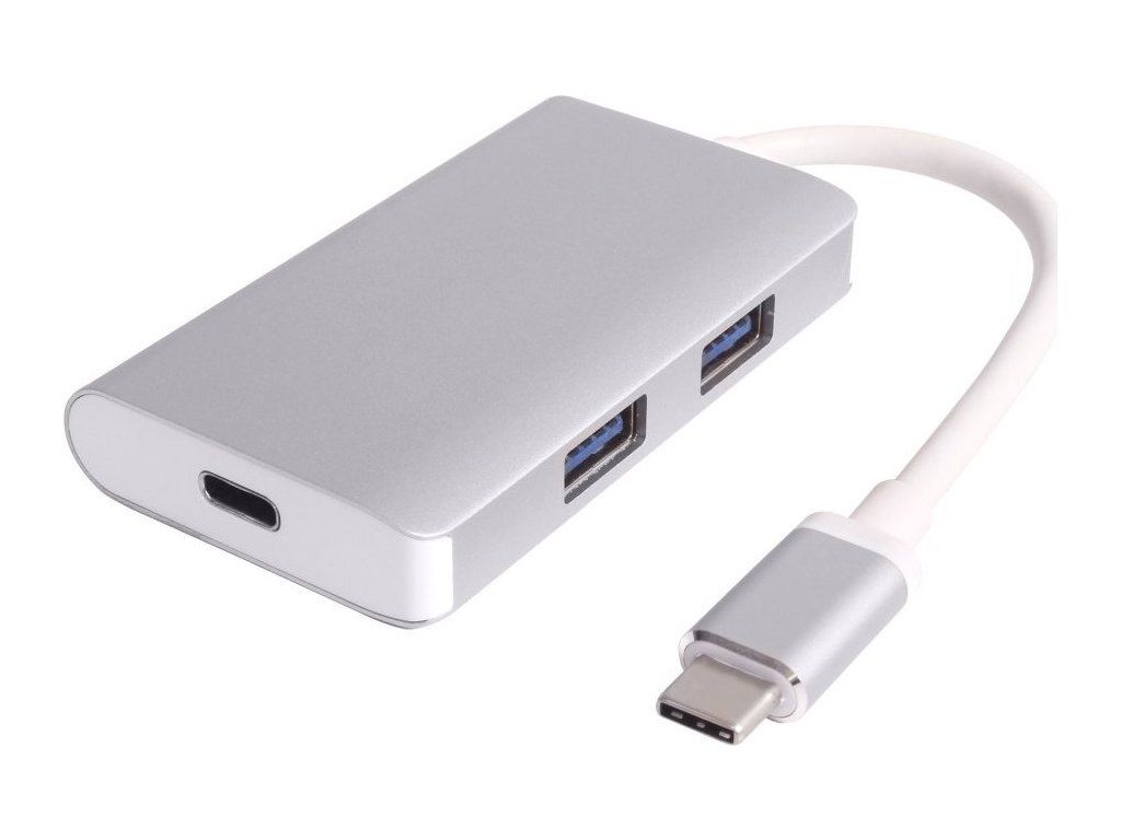 PremiumCord USB3.1 hub 2x USB3.0 + PD charge, hliníkové stříbrné pouzdro