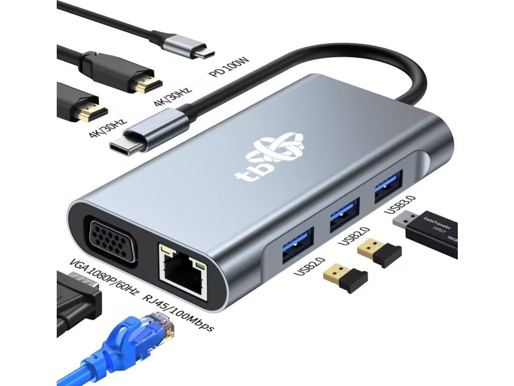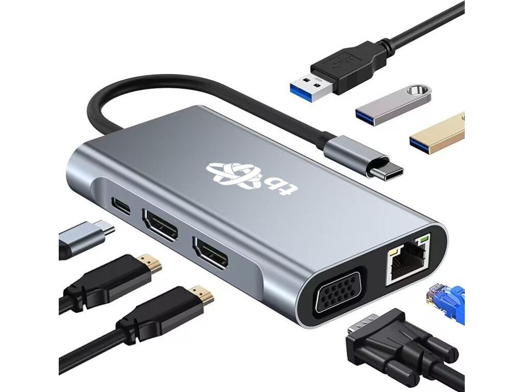 TB TB 8in1 Adapter USB C HDMI x2 USB VGA RJ45 PD