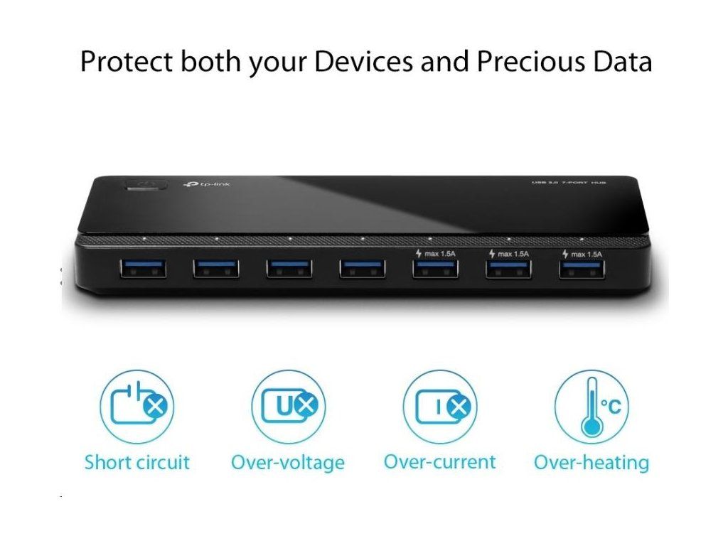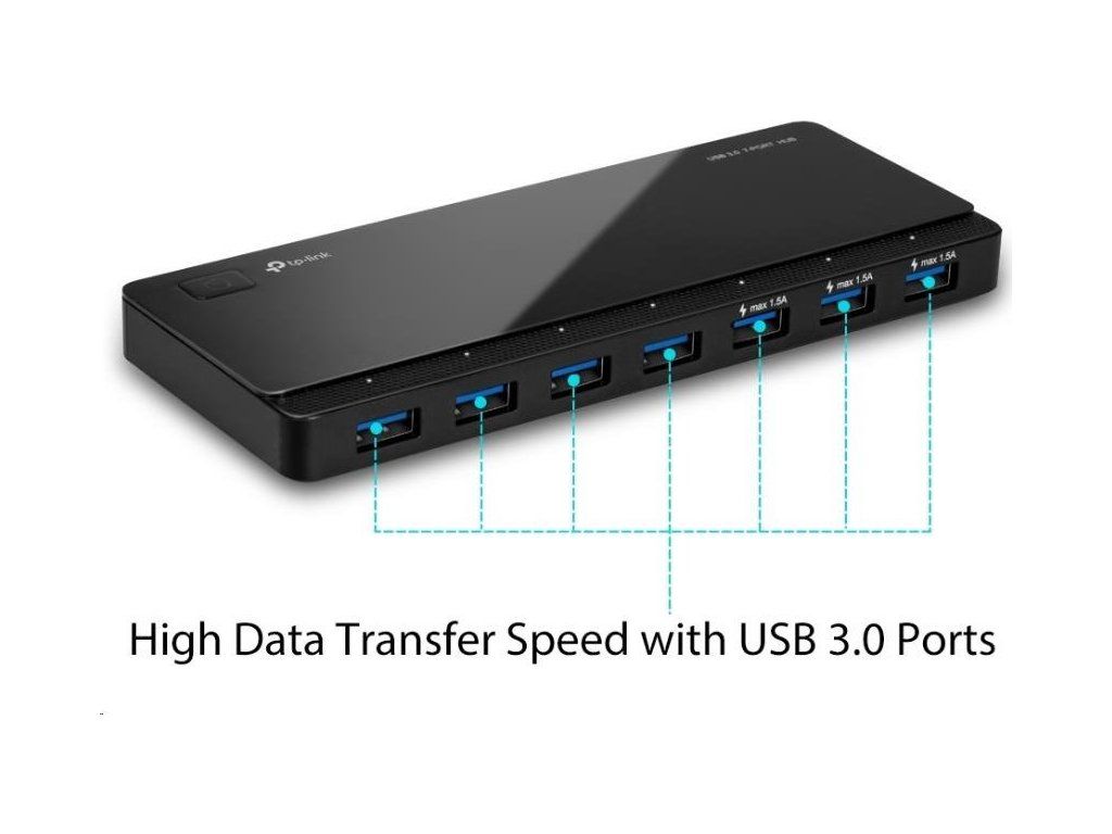 USB rozbočovač UH700 je skvelou voľbou na rozšírenie USB portov počítača na prenos dát, keď potrebujete súčasne pripojiť USB disk, USB myš, tlačiareň alebo iné zariadenia. Port USB 3.0 umožňuje prenosovú rýchlosť až 5 Gbit/s, 10-krát rýchlejšiu než USB 2.0.