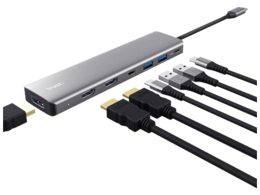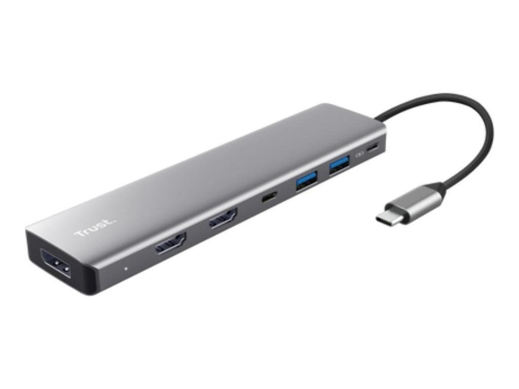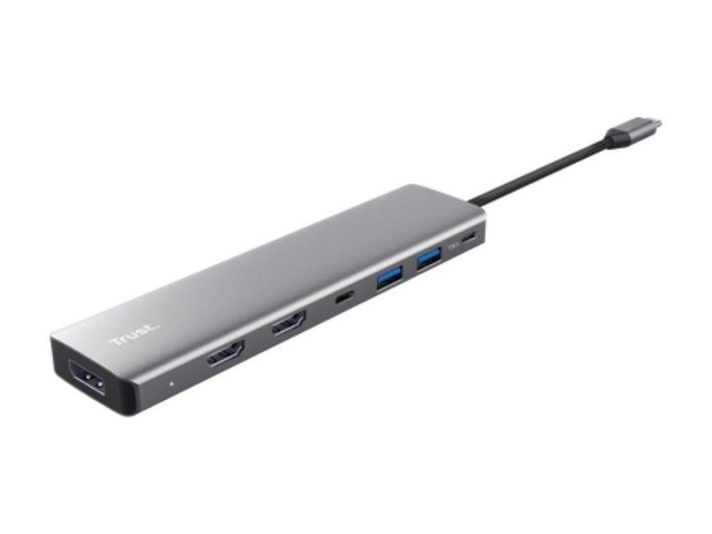 TRUST Dokovací stanice DALYX 7v1, 1xDP, 2xHDMI, 2xUSB-C, 2xUSB, šedá