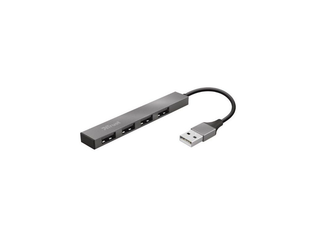 TRUST HALYX Hub, hliníkový 4-portový mini USB hub, 10 cm