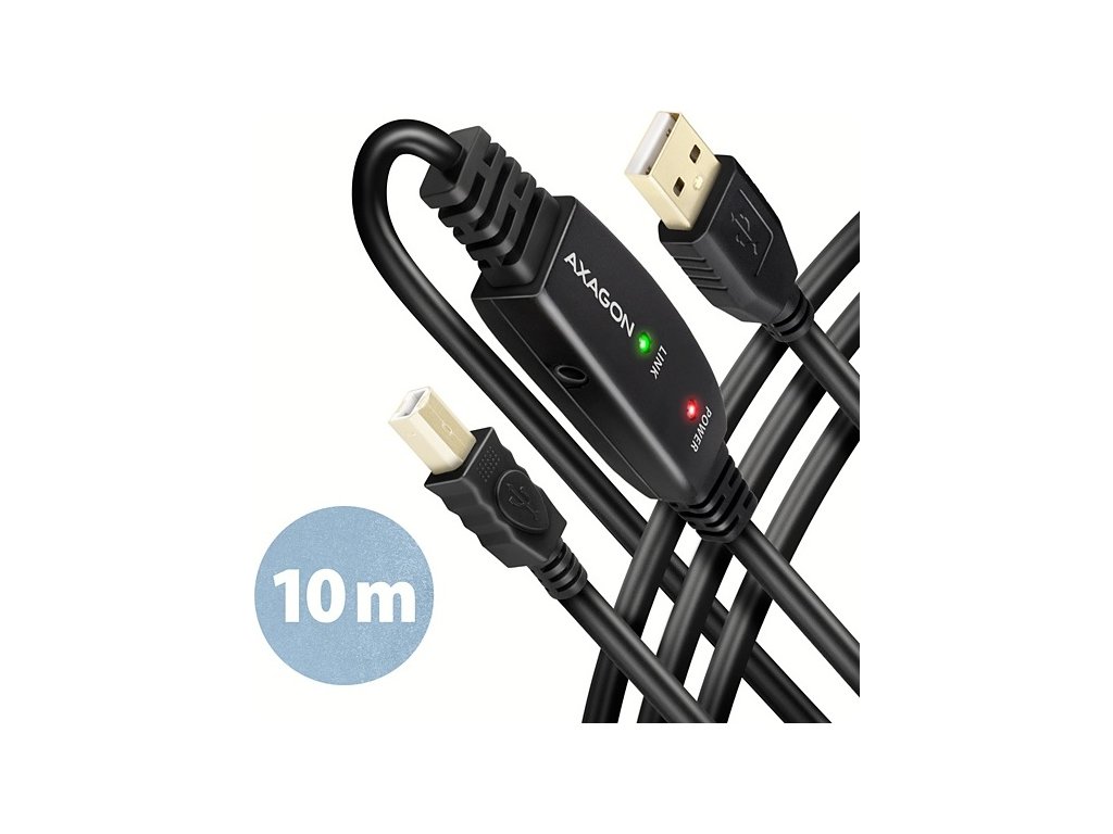 AXAGON ADR-210B, USB 2.0 A-M -> B-M aktívny prepojovací / repeater kábel, 10m