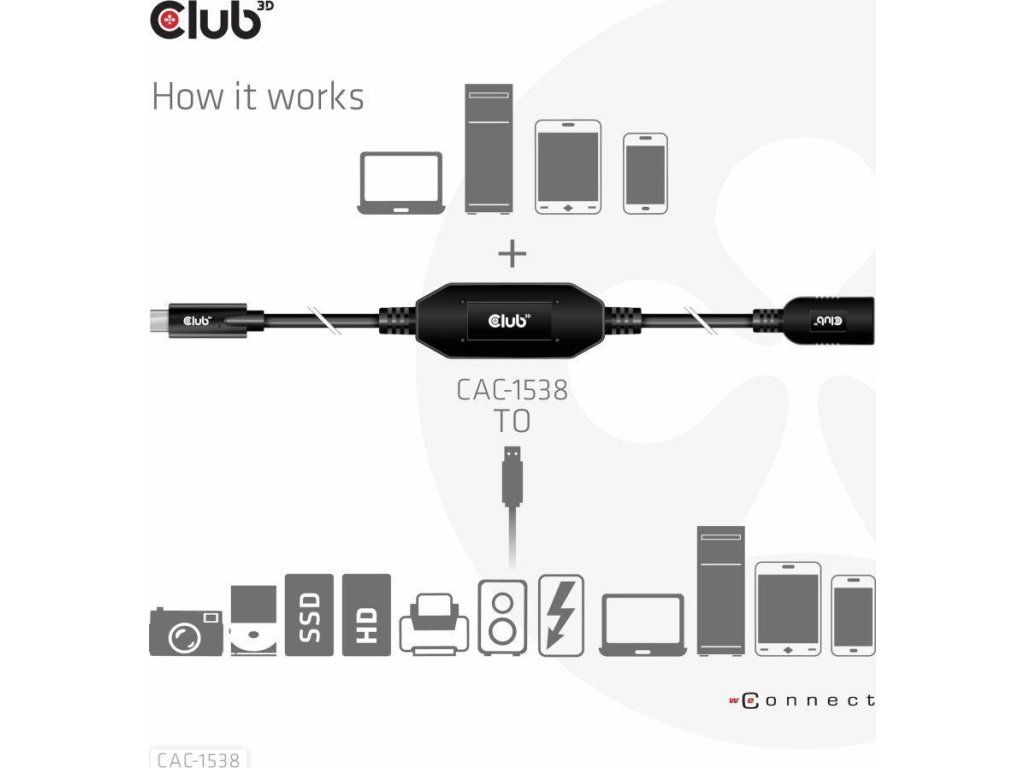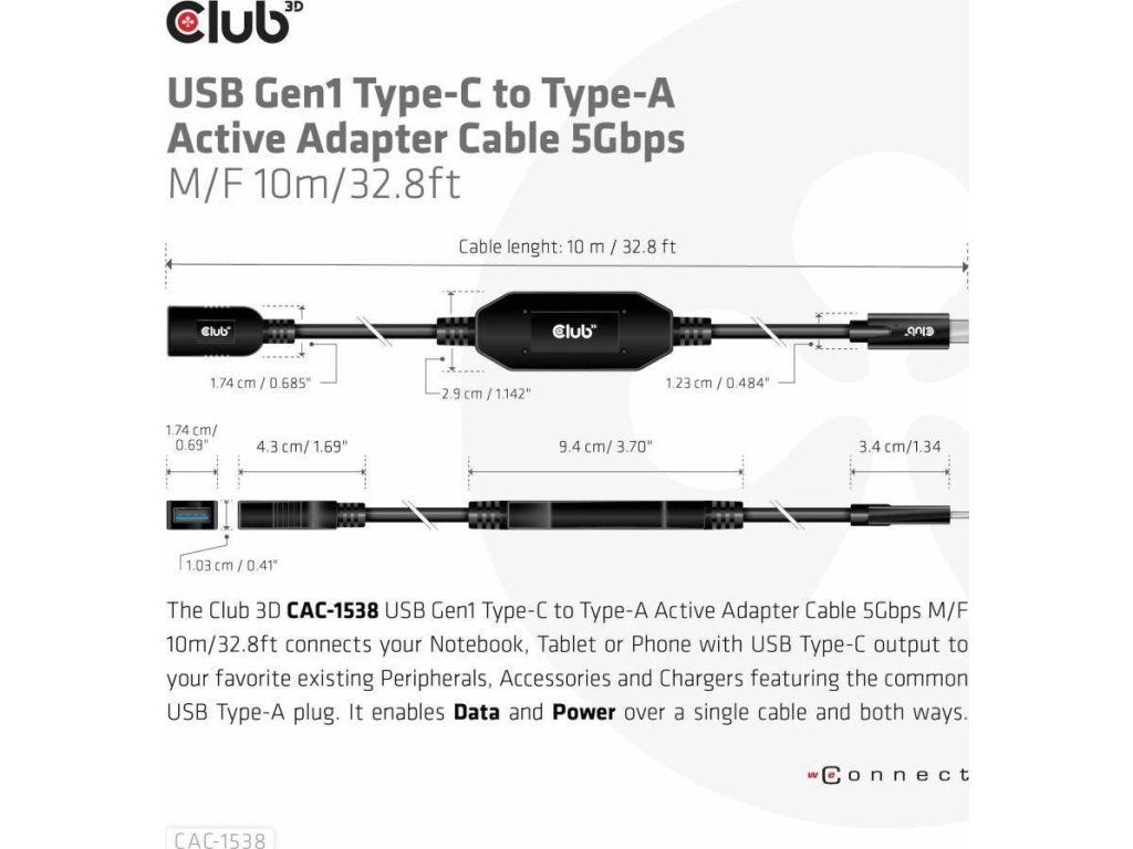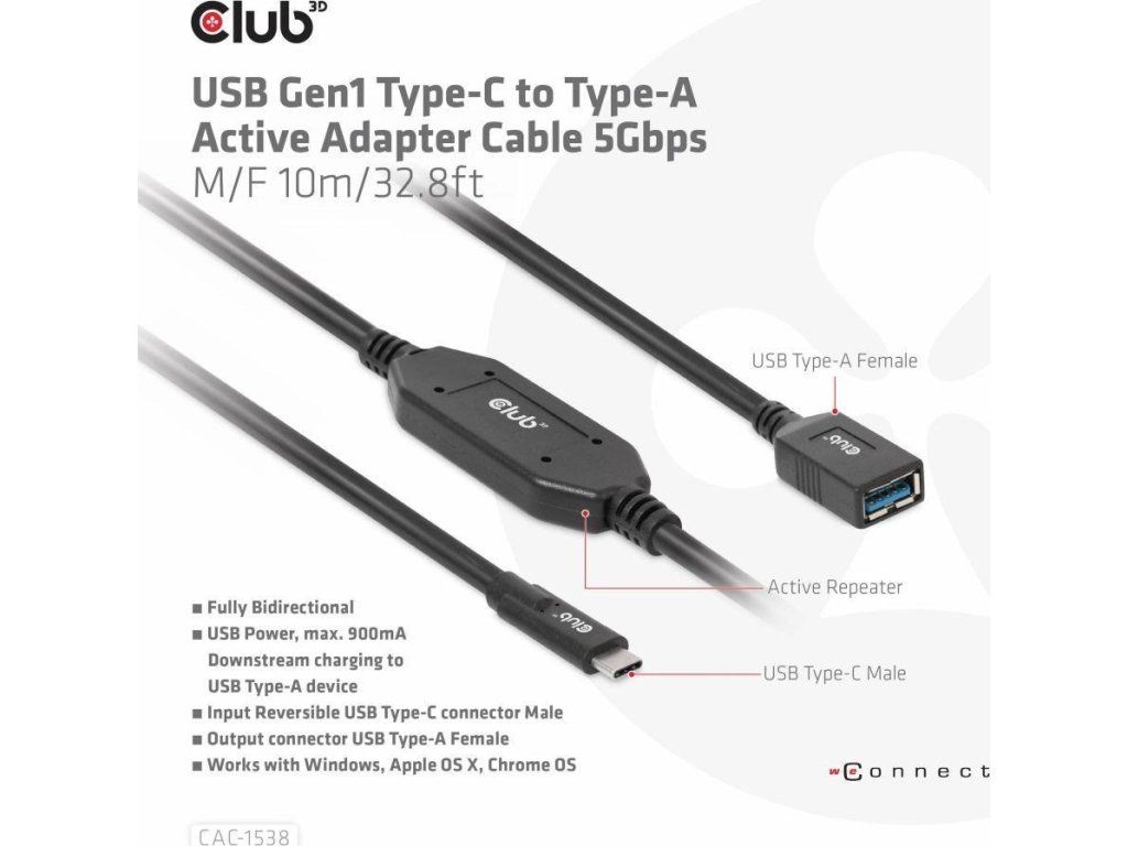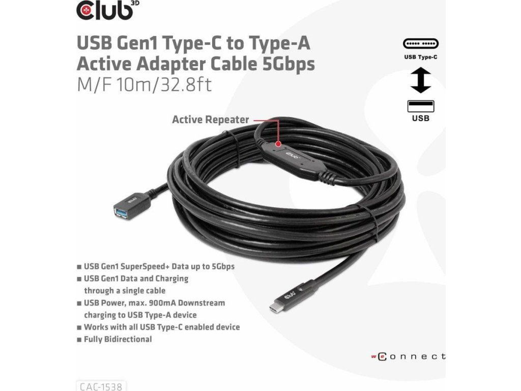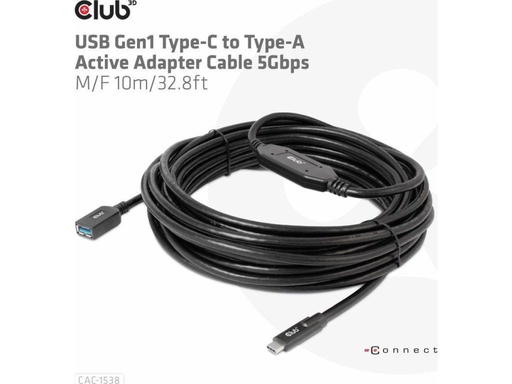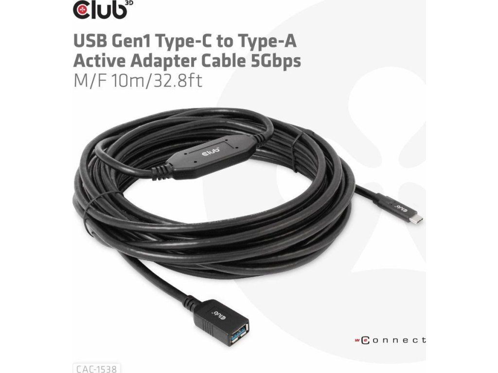 Club3D Kabel USB-C na USB-A, Aktivní adaptér/kabel, 5 Gbps (M/F), 10m