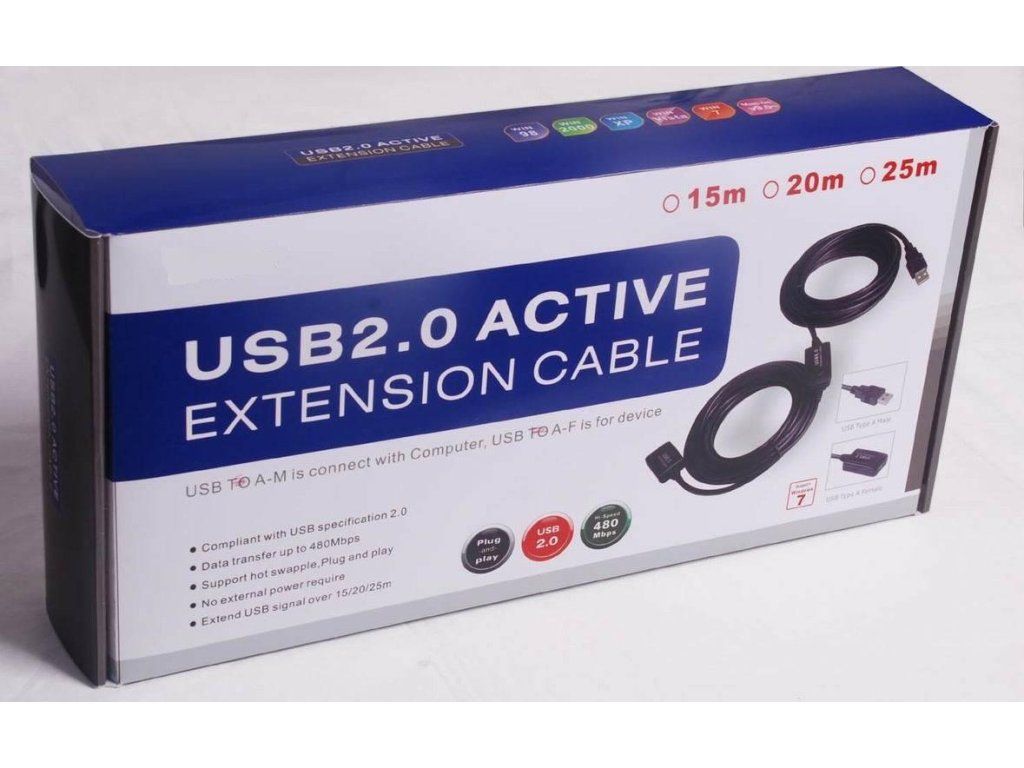 - Predlžovací kábel USB má dva integrované aktívne zosilňovače.