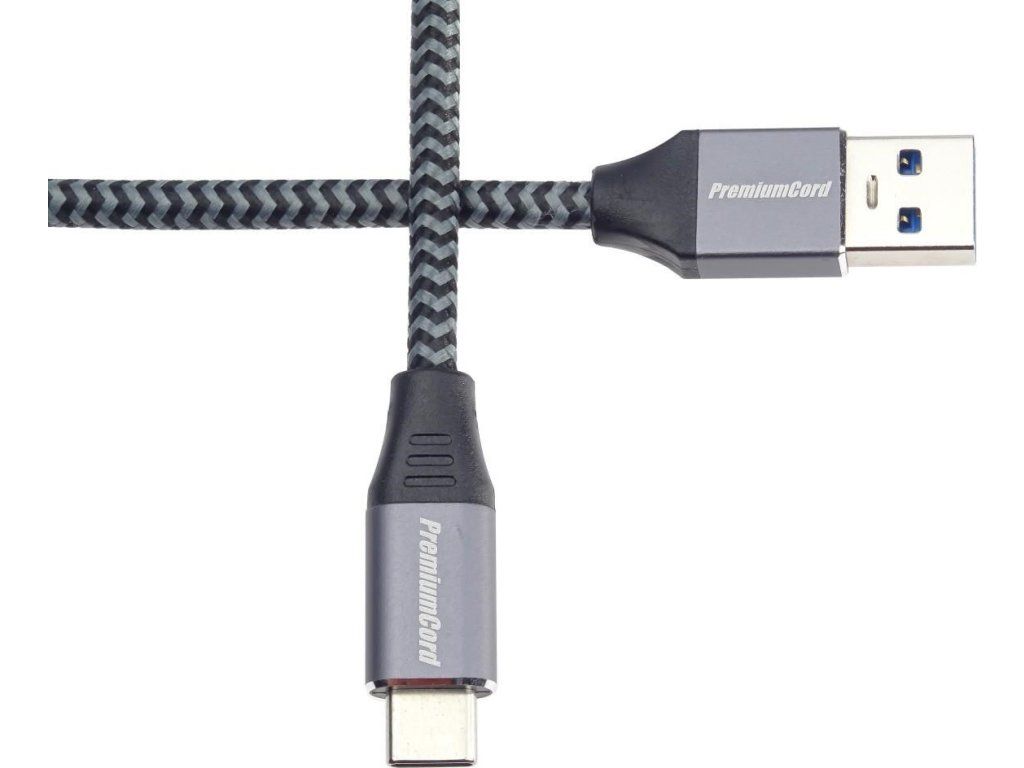 PremiumCord USB-C na USB 3.0 A (USB 3.1 generácia 1, 3A, 5Gbit/s) 0,5 m bavlnené opletenie a kovové hliníkové konektory
