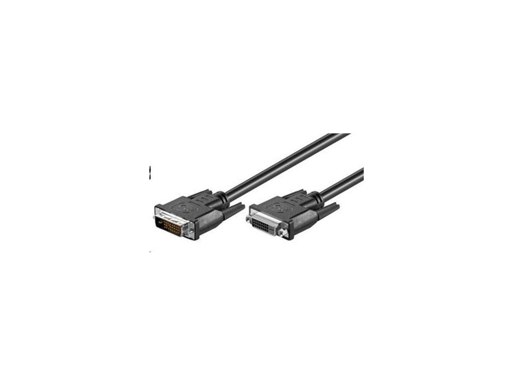 Prodlužovací DVI kábel pre digitálne LCD panely. Standard DVI-D prenáša iba digitálny signál, takže s ním môžete prepojiť digitálny výstup a nie je možné ho kombinovať s redukciami DVI <-> VGA. Kábel je vo vyhotovení dual link, takže dokáže pracovať v rozlíšení až 1920 x 1080 bodov neprokládané (štandard HDTV 1080p). Parametre a špecifikácie: - Pozlátené 2x DVI-D konektory - DVI-D (24+1) samica <=> DVI-D (24+1) samica - Kábel plne zapojený a dvojitá tieniaca vrstvy AWG30 - Maximálne rozlíšenie: 1920 x 1080 bodov neprokládané (štandard HDTV 1080p) - FULL HD 1080p/1080i/720p/720i - Balenie v PVC vrecku s českým popisom a EAN kódom - Farba kábla: čierna - Dĺžka: 5 m