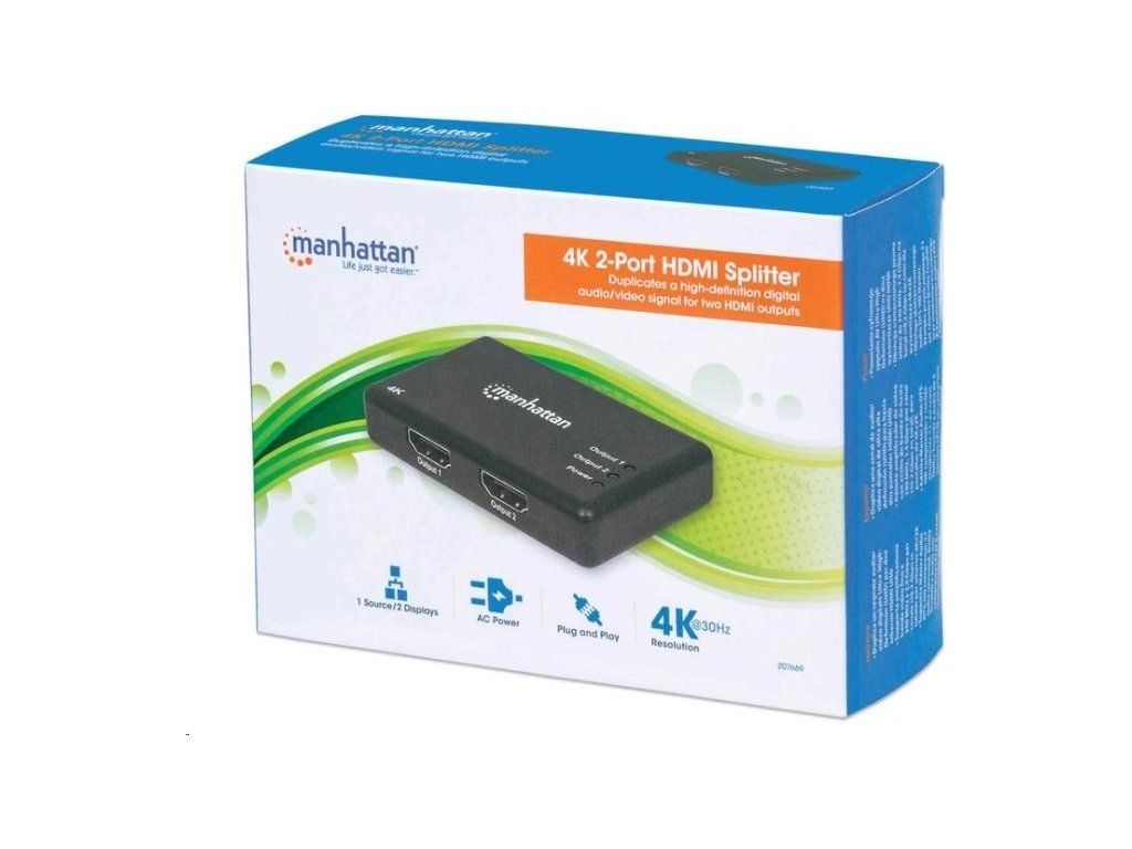 MANHATTAN Splitter HDMI 2 porty, 4K@30Hz, čierny