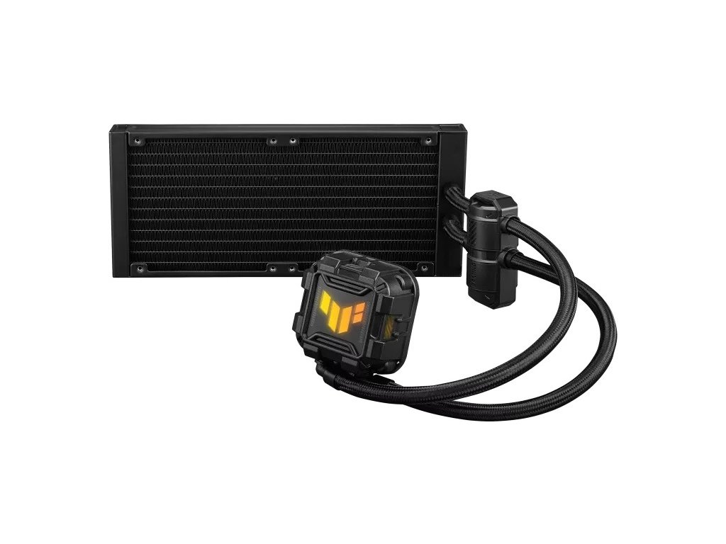 - Ventilátory chladiča TUF Gaming vylepšené jasnejším osvetlením Gen2 ARGB a drážkovanými žebrami pre lepšie prúdenie vzduchu a nižší hluk