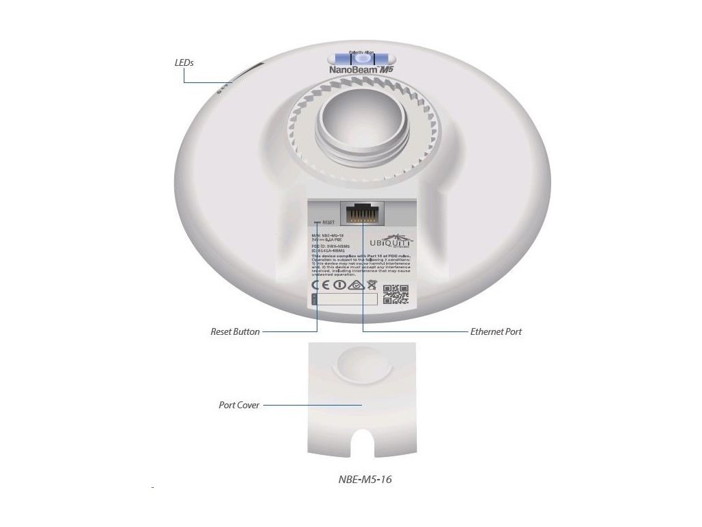 nanoBeam M5 2x16dBi je nová kompaktná jednotka s elegantným dizajnom a vysokým výkonom. Vnútri sa nachádza procesor MIPS Atheros 74KC s frekvenciou 560 MHz, za ktorým nasleduje 64 MB operačnej pamäte DDR2 a 8 MB pamäte Flash. Sieťový port podporuje 10/100 Ethernet a môže napájať jednotku pomocou 24V/0,5A pasívneho PoE (aktívne PoE podľa 802.3af nie je podporovaný). 802.11n a spätnú kompatibilitu s 802.11a. Vďaka technológii AirMAX (protokol TDMA) je možné pripojiť sa k prístupovému bodu s nízkou latenciou a vysokou priepustnosťou bezdrôtového pripojenia. Teoretická maximálna priepustnosť jednotky je 300 Mbit (MCS15, 802.11n, 2x2MIMO, pri šírke kanála 40 MHz). Technické špecifikácie: