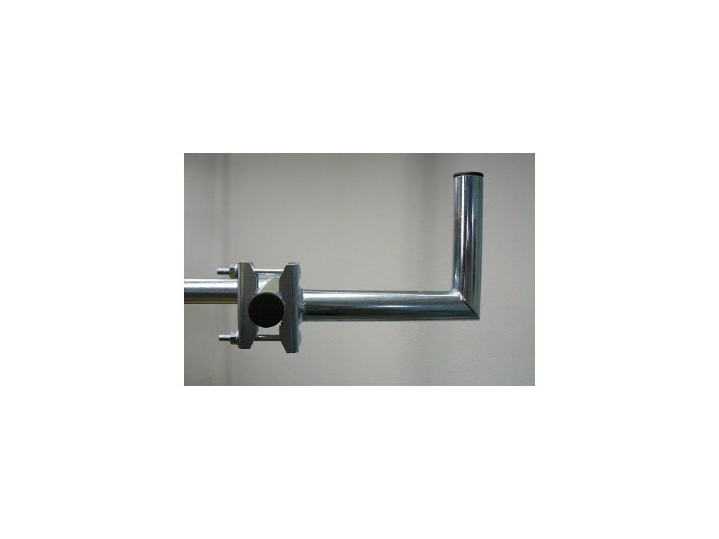 Držák vhodný k připevnění na balkónové zábradlí nebo vodorovnou trubku, pro uchycení satelitních parabol a větších antén.