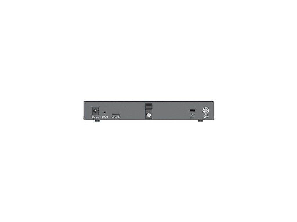 Vestavěný síťový přepínač s 5 gigabitovými porty, 4 porty PoE out a 2 porty 2,5 SFP.