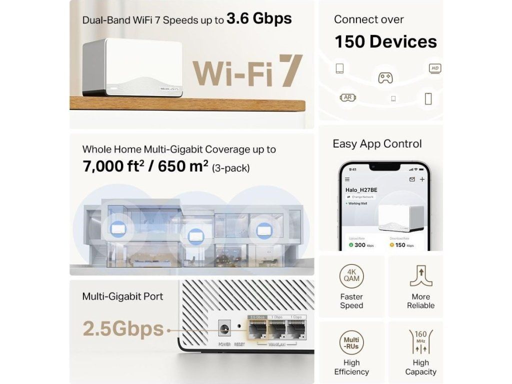 MERCUSYS Halo H27BE(2-pack) WiFi7 Mesh (BE3600,2,4GHz/5GHz,1x2,5GbELAN/WAN,2xGbELAN/WAN)