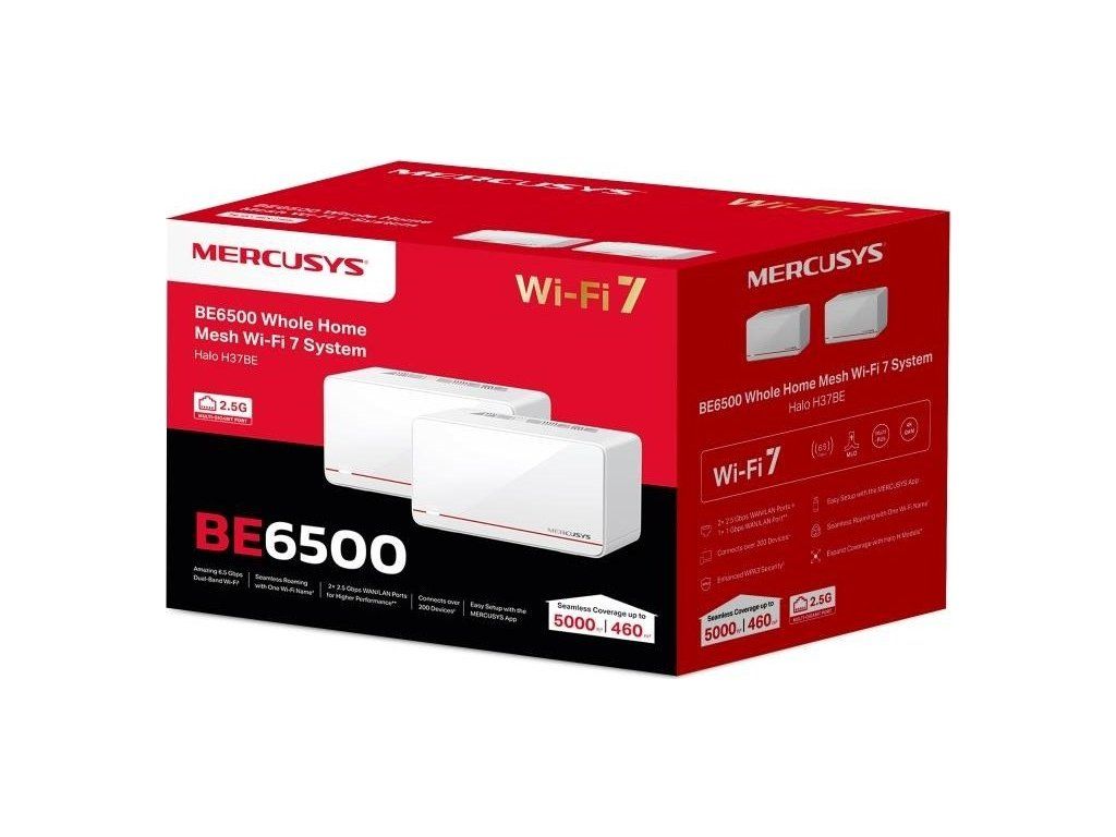 MERCUSYS Halo H37BE(2-pack) WiFi7 Mesh (BE6500,2,4GHz/5GHz,2x2,5GbELAN/WAN,1xGbELAN/WAN)