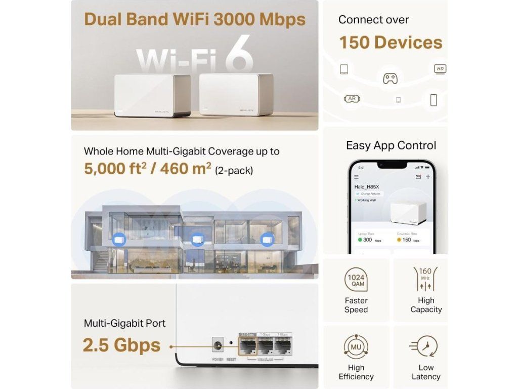 MERCUSYS Halo H85X(2-pack) WiFi6 Mesh (AX3000,2,4GHz/5GHz,1x2,5GbELAN/WAN,2xGbELAN/WAN)