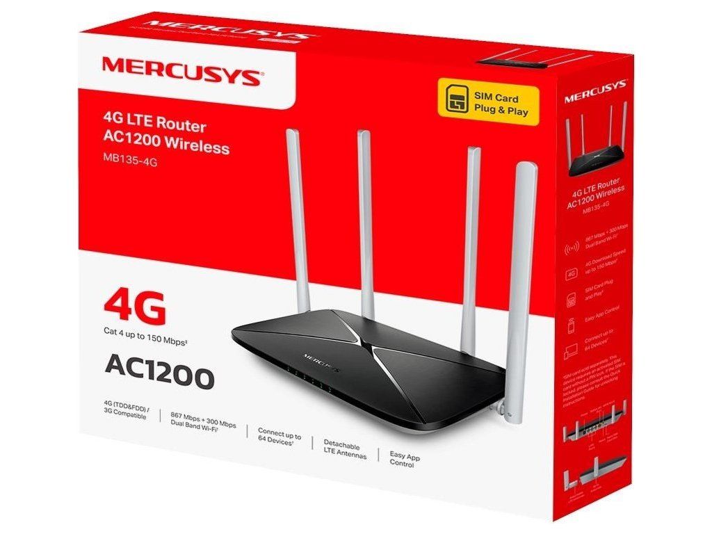 Mercusys MB135-4G WiFi5 router (AC1200, 4G LTE, 2,4GHz/5GHz,1x100Mb LAN/WAN,3x100Mb LAN,1xnanoSIM)
