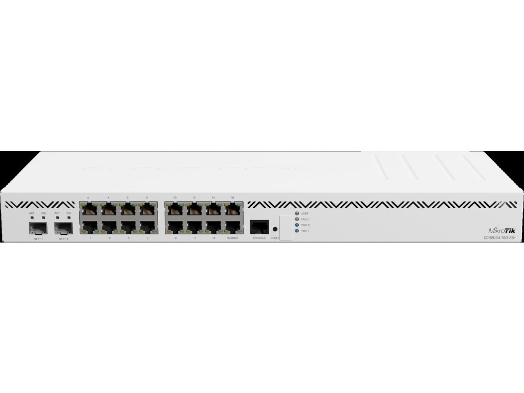 CCR2004-16G-2S+ je 19" rackový smerovač z novej série smerovačov CCR, ktorý sa vyznačuje najvyšším pomerom výkonu na jadro spomedzi všetkých smerovačov CCR, čo je najdôležitejší aspekt, pokiaľ ide o náročnejšie operácie založené na spracovaní na jedno pripojenie (napr. QoS). Smerovač poháňa 64-bitový procesor architektúry ARM s taktom 1700 MHz, má 4 GB pamäte DDR4 RAM a 128 MB úložiska NAND.
