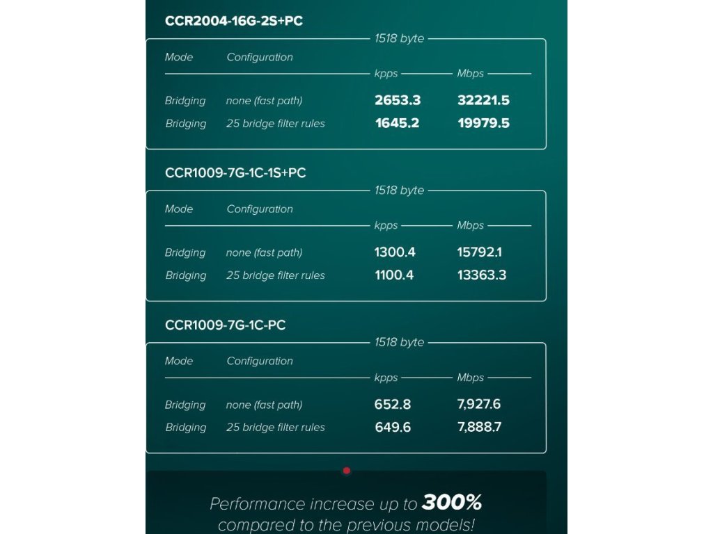 CCR2004-16G-2S+PC je 19" rackový stolný alebo rackový router z novej série smerovačov CCR, ktorý prichádza s pasívnym chladením a najvyšším pomerovým výkonom na 1 jadro zo všetkých CCR, čo je najdôležitejší aspekt pri náročnejších operáciách spracovania na pripojenie (napr. QoS). Router je napájaný procesorom so 64bitovou architektúrou ARM s frekvenciou 1200 MHz, disponuje 4GB DDR4 RAM a 128MB NAND úložiskom.