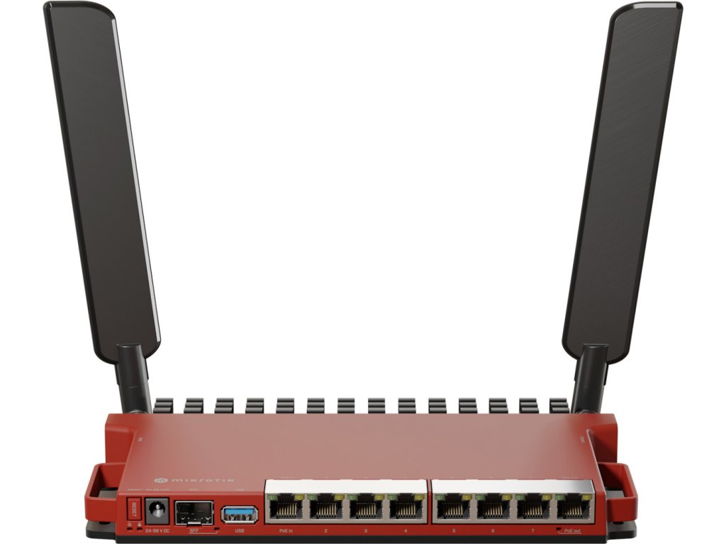 Nástupce legendární produktové řady RB2011 je tu! L009UiGS-2HaxD-IN je perfektní malý WiFi router s nízkými náklady na pořízení, požadavkem na WiFi 6, vysoký výkon a pasivní chlazení. Zařízení je vybaveno výkonným dual-core IPQ-5018 procesorem s taktem 800 MHz, 512 MB RAM, 128 MB uložištěm, 8x Gigabit LAN s podporou PoE-IN (24 - 56V pasive nebo 802.af) na prvním a PoE-Out (pouze pasive) na posledním portu, plnohodnotným USB 3.0 portem (například pro připojení LTE modemu), sériovým portem, optickým SFP portem s rychlostí až 2.5Gbps a nejnovější dual channel WiFi 6 s podporou 802.11b/g/n/ax standardů pouze v 2,4 GHz spektru.
