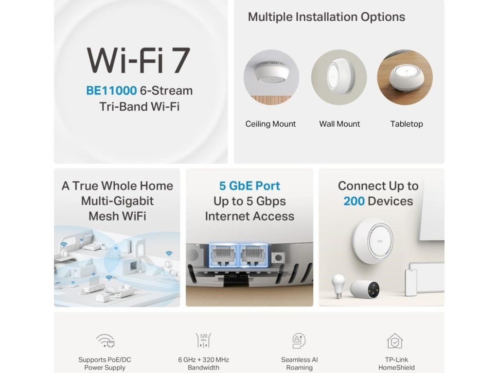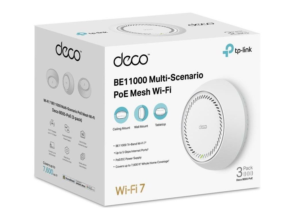 TP-Link Deco BE65-PoE(3-pack) WiFi7 Mesh (BE9300,2,4GHz/5GHz/6GHz,2x5GbELAN/WAN,1xPoE)