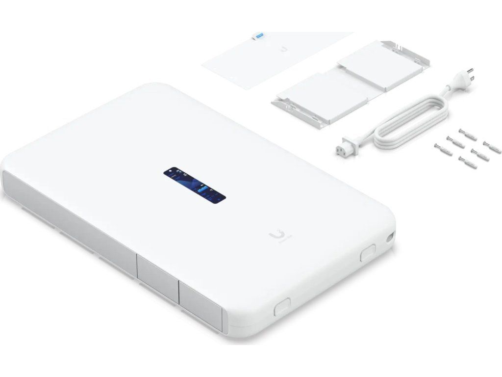 Dream Wall je další z řady zařízení UniFi All-in-one. Ukrývá v sobě bránu s firewallem, Wi-Fi 6 access point, NVR a switch s funkcí PoE. Jednotka poskytuje široké možnosti připojení do sítě. Nabízí možnost připojení 10Gbps SFP+ portem nebo ethernetovým portem 2.5Gbps. Pro připojení dalších zařízení v síti LAN pak nabízí 10Gbps SFP+ port spolu se 17 ethernetovými 1Gbps porty, z nichž 12 disponuje funkcí PoE (4x POE++, 4x POE+ a 4x POE). Z výroby je zařízení osazeno jedním hot-swap zdrojem s výkonem 550W a k dispozici je druhá pozice pro redundanci. Maximální spotřeba zařízení činí 532W včetně připojených napájených zařízení.