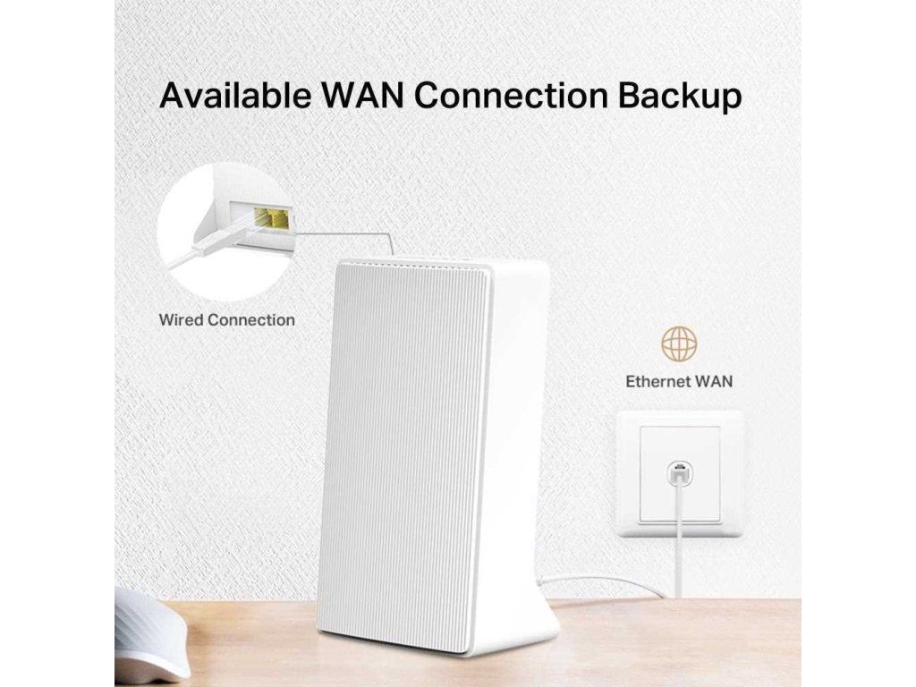 - Režim Wi-Fi routeru – Pripojte ethernetový kábel do portu LAN/WAN a získajte flexibilný prístup k záložnej možnosti pripojenia, keď sa vám nepodarí pripojiť k sieti 4G.