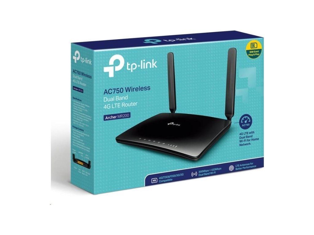 TP-Link Archer MR200 OneMesh WiFi5 router (AC750, 4G LTE, 2,4GHz/5GHz, 3x100Mb/s LAN, 1x100Mb/s LAN/WAN, 1xnanoSIM)