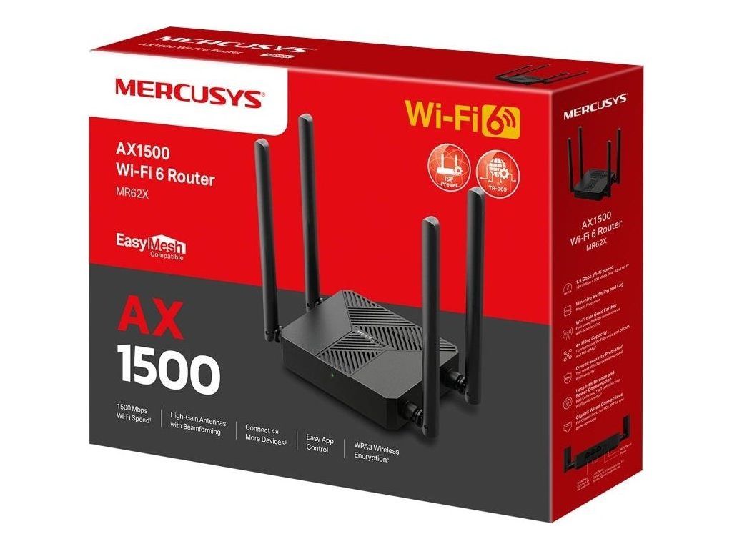 MERCUSYS MR62X WiFi6 router (AX1500,2,4GHz/5GHz,2xGbELAN,1xGbEWAN)