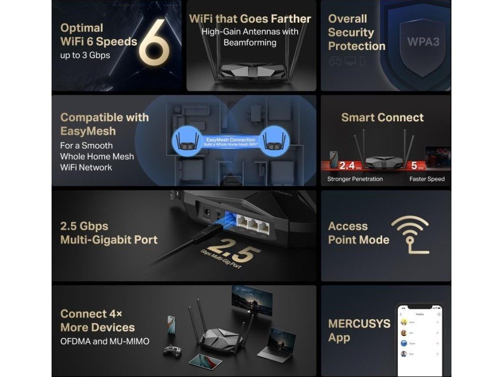 MERCUSYS MR85X WiFi6 router (AX3000,2,4GHz/5GHz,3xGbELAN,1x2,5GbEWAN)