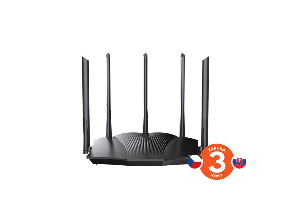Gigabitový Wi-Fi 6 (AX3000) router 802.11 ax/ac/a/b/g/n, zabezpečení WPA3, Wi-Fi+ Mesh, SMART CZ aplikace, VPN server/client, 1x GWAN, 3x GLAN, 5x anténa 6 dBi, až 2976 Mb/s (2,4GHz 574 Mb/s + 5GHz 2402 Mb/s), IPv6, Repeater mode, MU-MIMO, Beamforming.