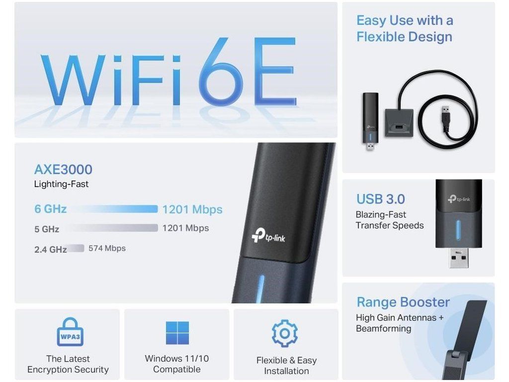 TP-Link Archer TXE50UH WiFi6E USB adapter (AXE3000,2,4GHz/5GHz/6GHz)