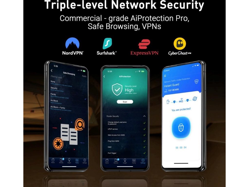 - Komplexný bezpečnostný systém – Je vybavený najnovšími bezpečnostnými funkciami ASUS, ktoré zabezpečujú robustnú ochranu pred sieťovými hrozbami.