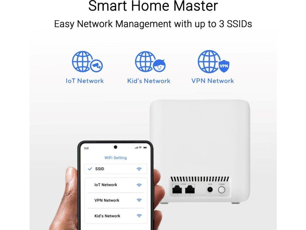 - Jednoduché nastavenie siete IoT, rodičovskej kontroly a siete VPN na viacerých zariadeniach pomocou SSID Smart Home Master