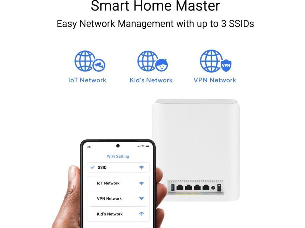 - Jednoduché nastavenie siete IoT, rodičovská kontrola a VPN siete na viacerých zariadeniach pomocou SSID Smart Home Master