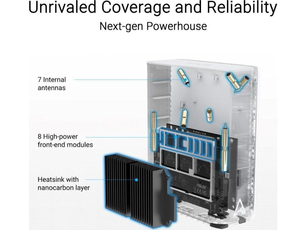 - Sedem interných antén a osem vysoko výkonných predných modulov eliminuje mŕtve zóny WiFi