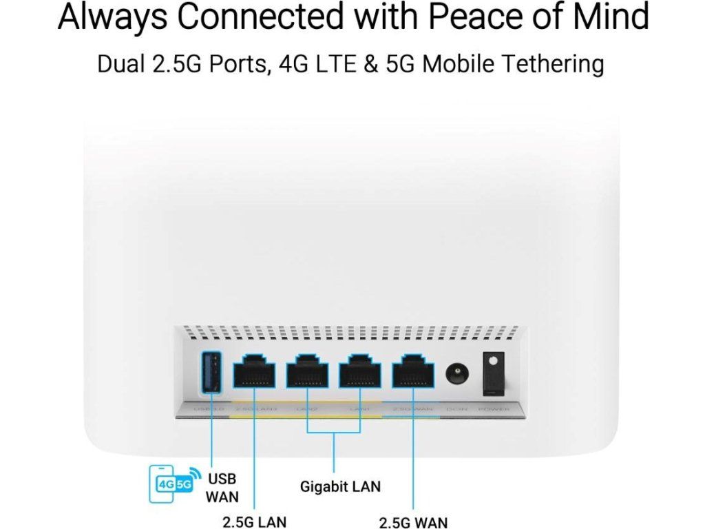 - Flexibilné duálne 2,5G ethernetové porty pre super rýchly kabelový backhaul