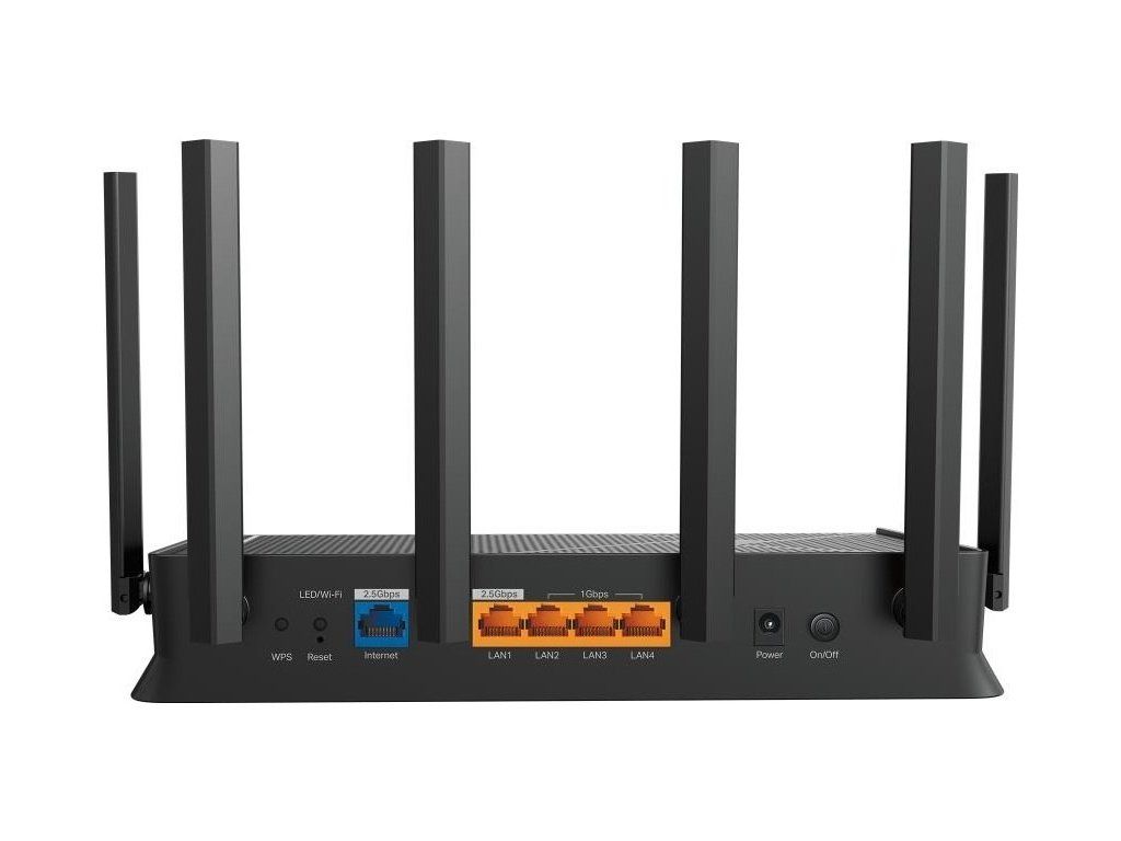 - 2.5G káblové pripojenie: 1× 2,5 Gb/s WAN port, 1× 2,5 Gb/s LAN port a 3× 1 Gb/s LAN porty ponúkajú vysokorýchlostný prenos dát.