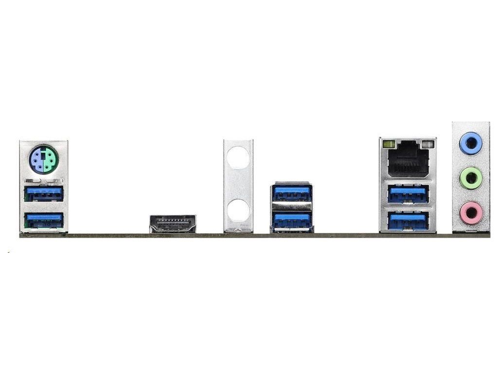 | Vstupy/výstupy na zadnom paneli | - 2 x porty antény - 1 x port PS/2 pre myš/klávesnicu - 1 x port HDMI - 6 x USB 3.2 porty Gen1 (podporuje ochranu proti ESD) - 1 x port RJ-45 LAN s LED diódou (ACT/LINK LED a SPEED LED) - HD audio konektory: Line in / Predný reproduktor / Mikrofón |