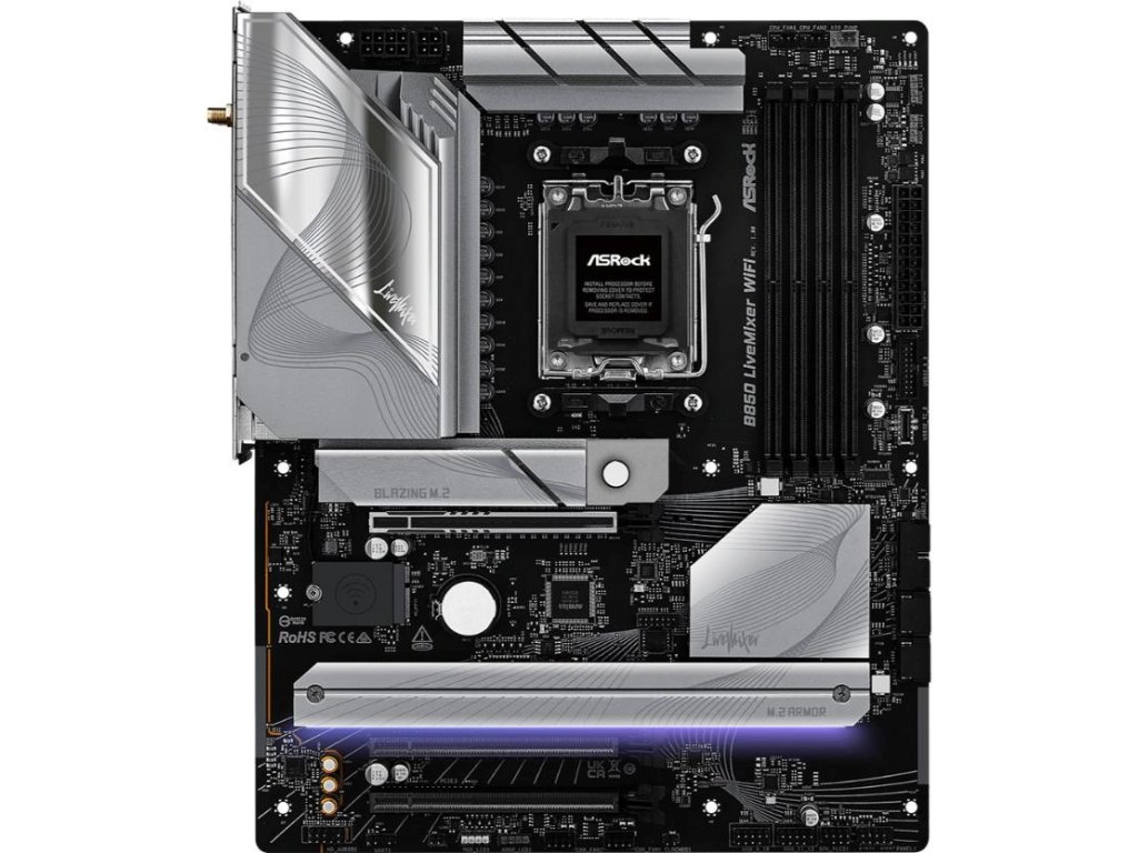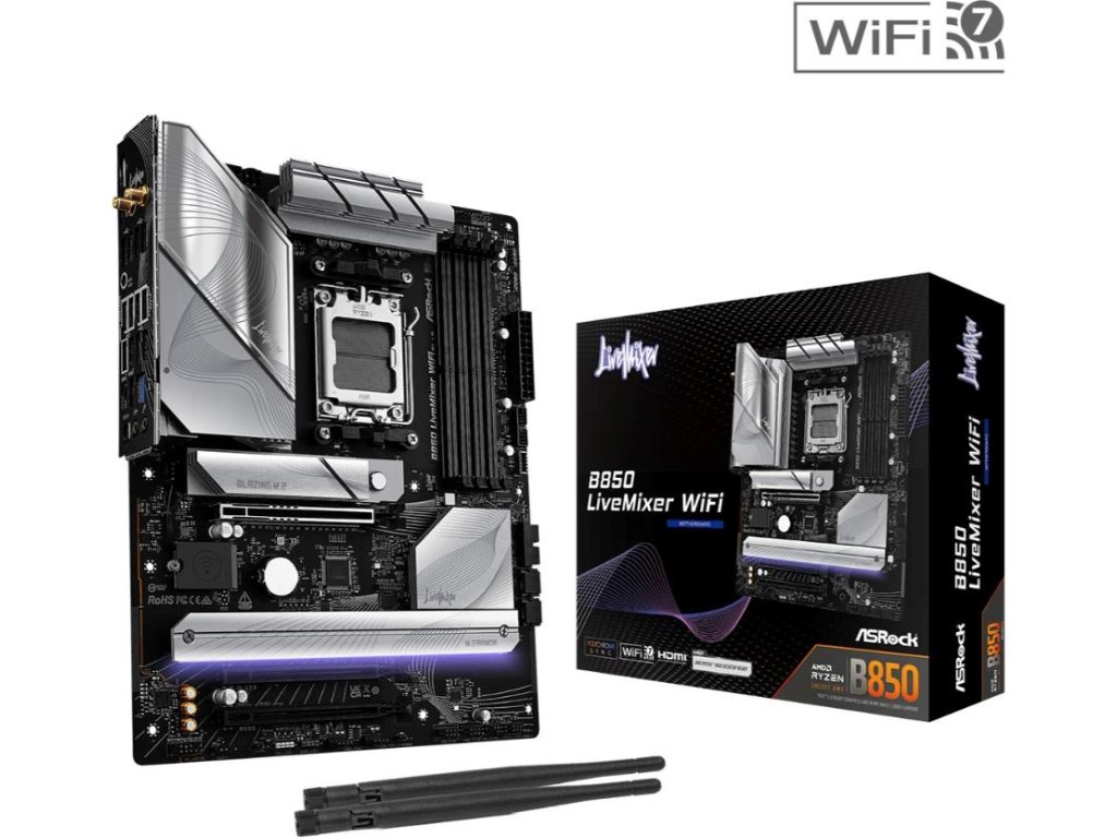 ASRock MB Sc AM5 B850 LiveMixer WiFi, AMD B850, 4xDDR5, 1xDP, 1xHDMI, WiFi, ATX