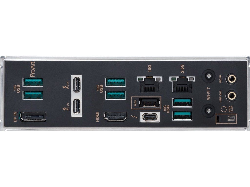 ProArt Z890-CREATOR WIFI posilňuje tvorcov všetkých úrovní maximalizáciou výkonu najnovších procesorov Intel Core™ Ultra (Séria 2) s 16+1+2+2 tímovými napäťovými stupňami, slotmi DDR5, PCIe 5.0 a rýchlym pripojením vrátane dvoch portov Thunderbolt™ 5, 10G a 2,5G Ethernetu a WiFi 7.