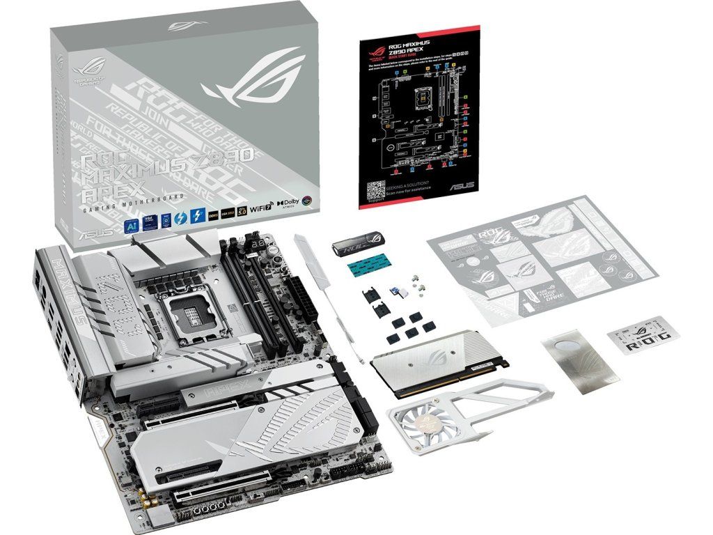 ROG Maximus Z890 Apex plne podporuje procesory Intel Core™ Ultra (Séria 2). Precízne navrhnutý pre najvyššie pretaktovanie, nesie odkaz série do novej generácie. S výnimočným napájaním a dvojvýkonným DDR5 pamäťovým usporiadaním môžu prelúskavači získať a prekonať svoje ambície v rekordnom výkone CPU a pamäte. Pre tých, ktorí uprednostňujú ľahšie farby pre estetiku svojho zostavy, má ROG Maximus Z890 Apex povrch v šedo-dlabašovej farbe, leštené kovové akcenty, elegantné kontúry a prevažne striebornú paletu.