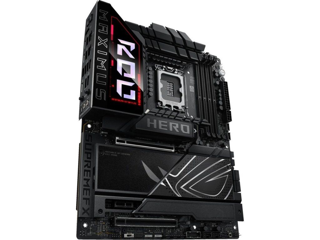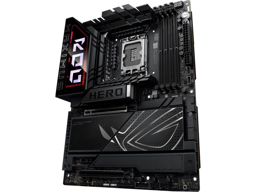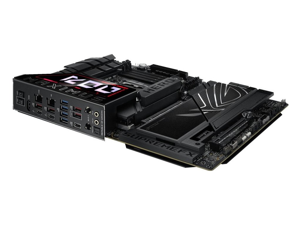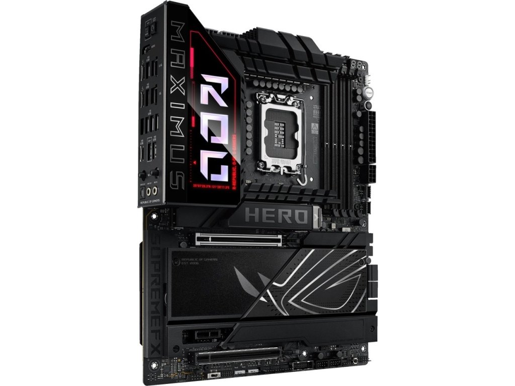 ROG Maximus Z890 Hero odomyka výkon Intel Core™ Ultra procesorov (Series 2) prostredníctvom exkluzívnych AI PC technológií, spoľahlivým napájaním, optimalizovaným teplotným manažmentom, rozsiahlou podporou PCIe 5.0, DDR5 slotmi a WiFi 7. Medzičasom, ostré dizajnové prvky a Polymo II Lighting akcenty okolo loga ROG dodávajú podpisovú estetiku, ktorá pozdvihuje dizajn systému.