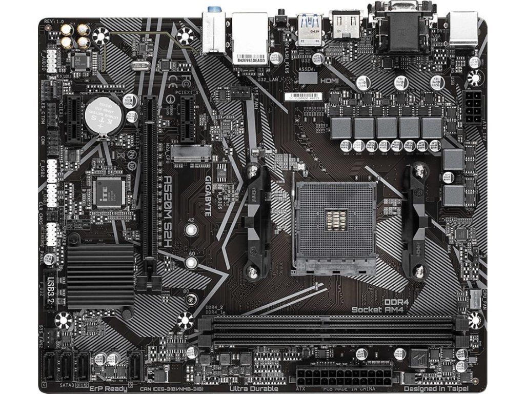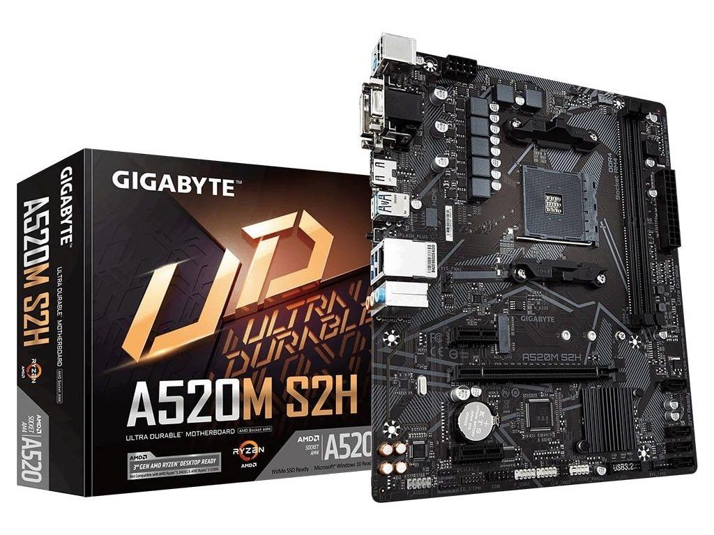 GIGABYTE MB Sc AM4 A520M S2H, AMD A520, 2xDDR4, 1xHDMI, 1xDVI, VGA, mATX