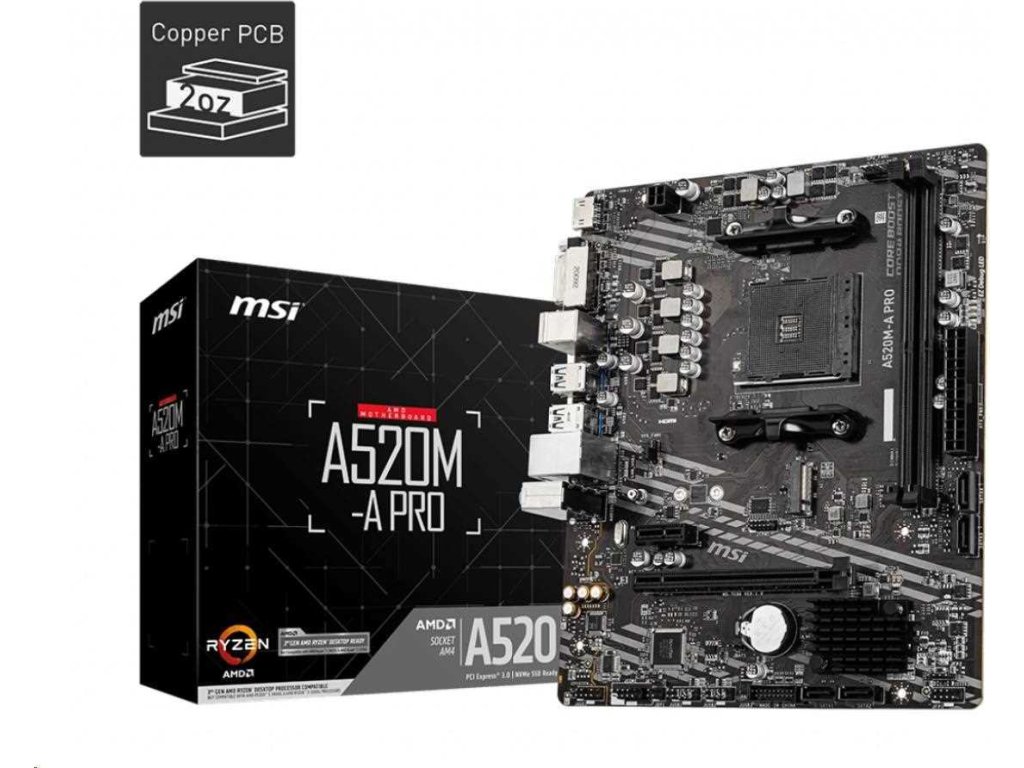 MSI MB Sc AM4 A520M-A PRO, AMD A520, 2xDDR4, m-ATX