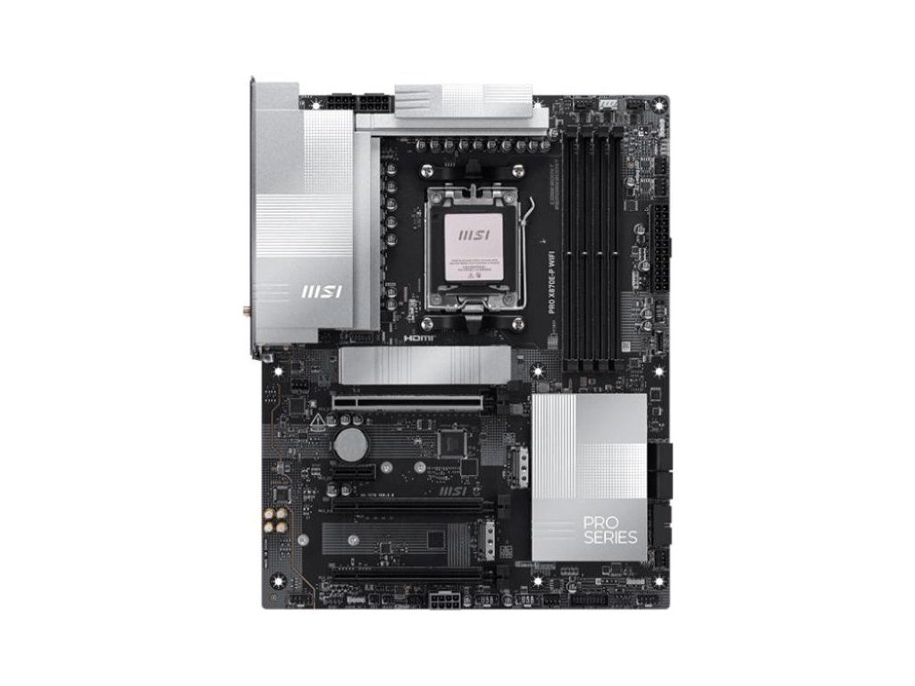PRO X870E-P WIFI ponúka jednoduchý dizajn s harmónickým strieborným farebným schémou, ktorý dokonale ladí s bielymi aj čiernymi zostavami PC. Je vybavený mnohými exkluzívnymi funkciami MSI, skutočné Wi-Fi 7 s EZ Antenna, 5G LAN, PCIe 5.0 M.2 s EZ M.2 Shield Frozr II a Navýšeným PCIe napájaním, pripravený na procesory AMD Ryzen 9000 série.