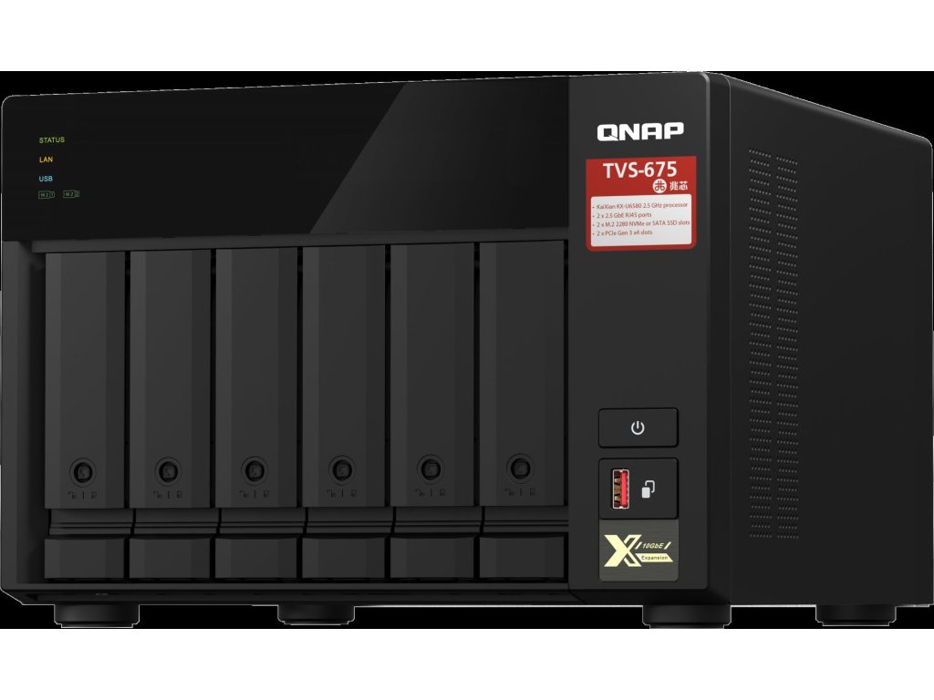 TVS-675 je vybavený 8-jadrovým procesorom Zhaoxin KaiXian KX-U6580 s architektúrou x86 a poskytuje podnikom pokročilé riešenie NAS s kapacitou 2,5 GbE na zvládanie každodenných úloh, ako je zálohovanie/obnovovanie súborov, a na podporu tímovej spolupráce s vyššou produktivitou. Okrem hardvérových výhod s integrovanými slotmi M.2 SSD na akceleráciu vyrovnávacej pamäte a rozšírenie PCIe, TVS-675 podporuje bohaté podnikové a mediálne aplikácie (vrátane ochrany snímok, virtuálnych strojov, brán cloudových úložísk, zobrazenia 4K HDMI a transkódovania v reálnom čase) spolu s rozšíriteľnou kapacitou úložiska a aplikáciami na požiadanie, čo z neho robí nákladovo efektívne a spoľahlivé dátové úložisko a mediálne NAS.